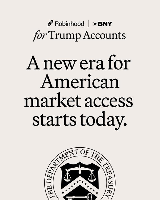U.S. Treasury is reportedly tapping $HOOD and BNY to help run Trump Accounts for children.
